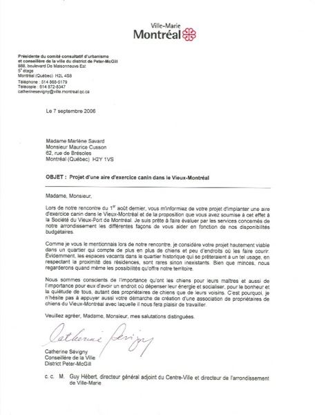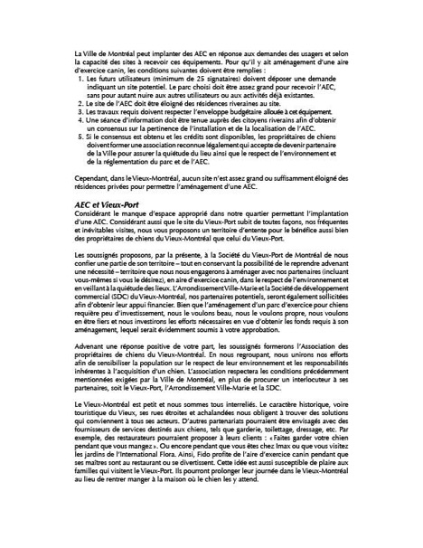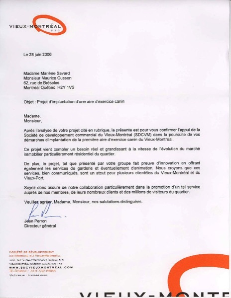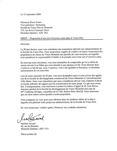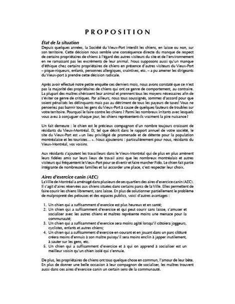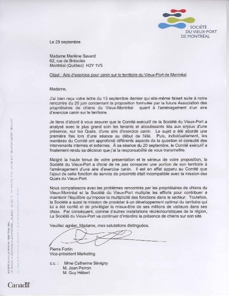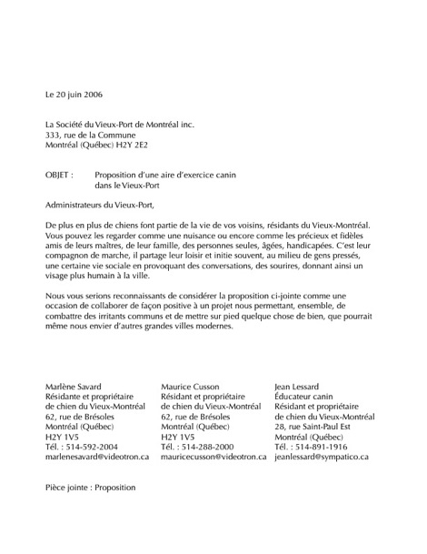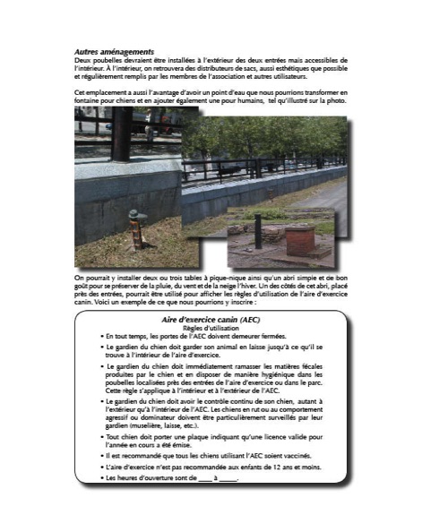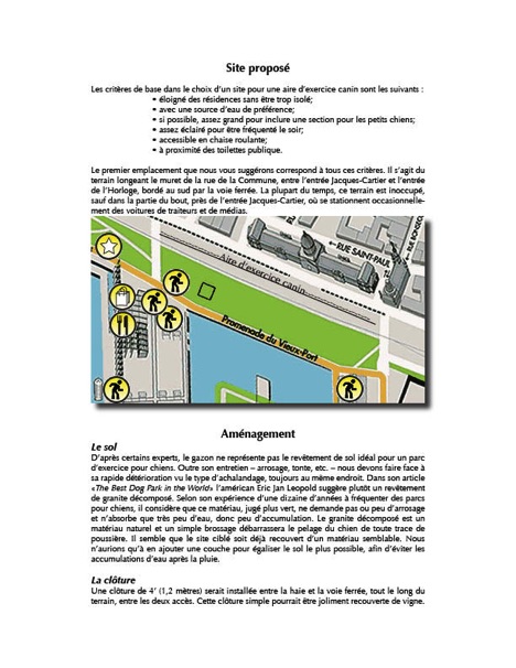 Proposition d'une aire d'exercise canin présentée à la Société du Vieux-Port de Montréal le 20 juin 2006