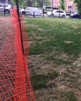 Plentiful clover seeds unfortunately failed to save the grass in the large section of the park where new grass was installed