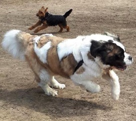 Lots of exercise! A dog of any size needs about four hours of exercise per day, every day. So going to the dog park, where he can run, get excited and play with his friends, it does him a lot of good. Get some fresh air, be free, roll around and rub against the grass.