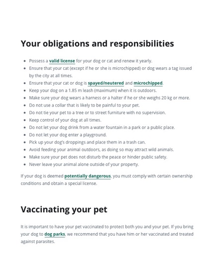 Why be so harsh on dogs knowing that for the majority of us, they are part of the family, and that for many it is even the only companion on the go. And the majority of us respect our obligations towards the City of Montréal (vaccinated, sterilized, microchipped, in addition to the dog permit) but the City for its part, has no valid reason to punish us all with these exorbitant fines following a few unfortunate past events involving aggressive dogs.