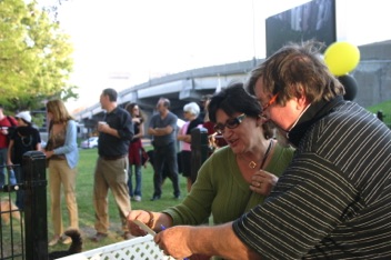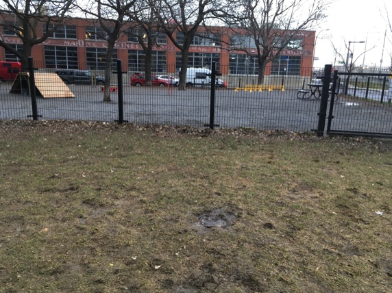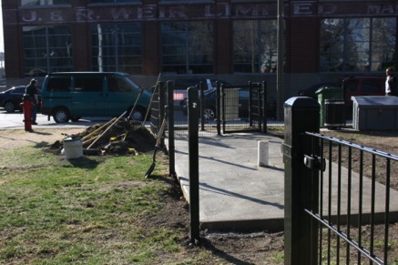 The park had to be closed for a few weeks while the grass took up. When it reopened, a fence was then installed to protect the grassy area while allowing dogs to play in the gravel portion of the park. But this has not always been respected.