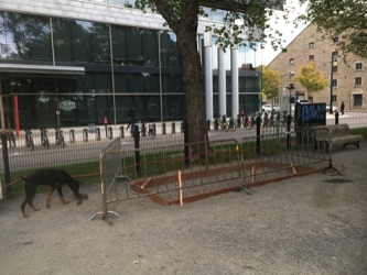 After this refusal of our project by from Old Port, Julie-Emmanuelle Carle who was a member of the Board of CCVM (Canine Club Vieux-Montréal) told us about the green space at the corner of Duke & Brennan