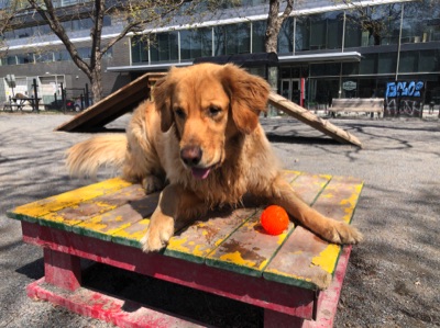 So, as absurd as it may sound, if you live in Montréal, unless you have your own private yard, you are prohibited from playing ball with your dog, even in a dog park, as it could cost you a lot.