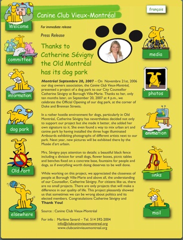 Maurice Cusson and myself, Marlène Savard, founded the Club Canin Vieux-Montréal (CCVM) Canine Club Vieux-Montréal and registered it as an association dedicated to defending the interests of dog owners and achieving a dog park project.